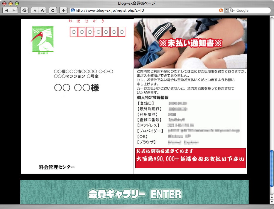 まぁ、万一検索エンジンで偶然やってきた人が引っかかって、騙されてお金払ったりしちゃまずいんで削除しときました。
